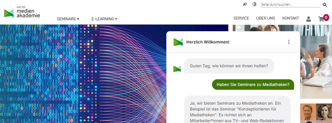 Eine Website ist geduldig und kann unendlich viele Informationen aufnehmen – aber wo genau steckt nun die, die ich brauche? Die ARD.ZDF medienakademie hat einen KI-Bot auf die Website gestellt, der die Zahl der Suchklicks für die Nutzer erheblich reduziert.